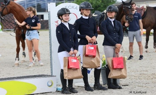 T.Klauzová s Jamestown se rozeskakovala o medaili s 0 po třech kolech a po lehké chybě se umístila na krásném 4. místě. S jednou chybou v prvním kole dokončila T.Nechutná a Belle-E a skončila na 6. místě, s 8 tr. Body dokončily zbývající tři a zařadily se na E.Dohnalová Canthaga 13. místo, B.Jílková Rightly Star na 14. a K.Hajšmanová Remember Me na 15. místo.